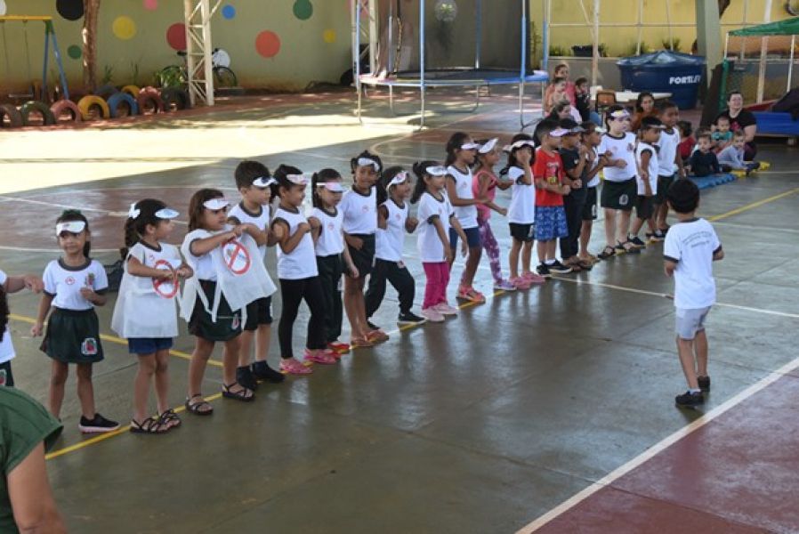 Na ocasião as crianças apresentaram uma peça teatral e um número musical sobre a importância da prevenção da doença e eliminação de criadouros do mosquito Aedes aegypti, transmissor da dengue, chikungunya, zika e febre amarela.