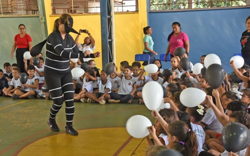 Na manhã desta terça, dia 25, os espectadores do teatro foram os estudantes da Escola Municipal Professor Dorival Teixeira, no bairro Celina.