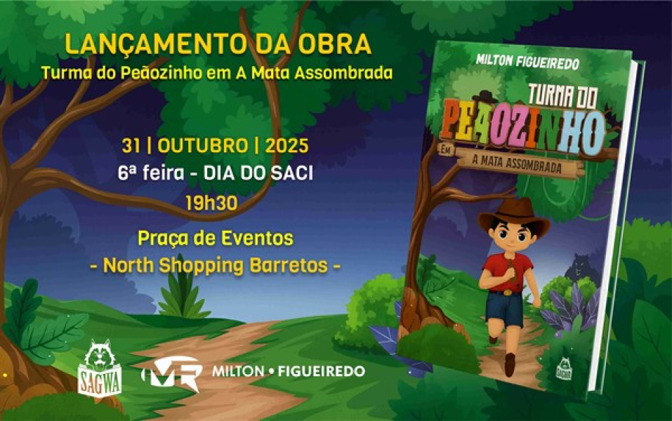 No dia 31 de outubro, data em que se comemora o Dia do Saci, o escritor e jornalista Milton Figueiredo lança oficialmente o livro "Turma do Peãozinho em A Mata Assombrada", publicado pela Sagwa Books Editora. O evento será realizado às 19h30, na Praça de Eventos do North Shopping Barretos, e marca um momento especial para a literatura infantojuvenil ao unir aventura, cultura sertaneja e o folclore brasileiro.