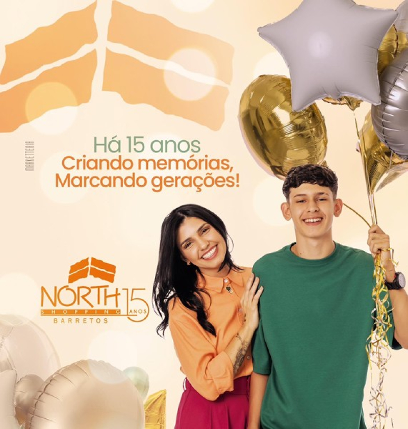 O North Shopping Barretos lançou nesta terça-feira, 04, sua campanha comemorativa de 15 anos, inspirada na história real de Joaquina de Paula Lima e de seu filho Arthur de Paula Oliveira Lima, que vivem em Barretos há mais de seis anos desde que chegaram para o tratamento de Samuel, pai de Arthur e marido de Jô, no Hospital de Amor. No mesmo anúncio, o empreendimento apresentou a campanha de Natal 2025 "A Luz que Brilha em Você", que terá 15 contemplados em alusão aos 15 anos do shopping, com sorteio de 01 Renault Kardian zero quilômetro e 14 anéis solitários em ouro 18 quilates com brilhante, além de caráter solidário.