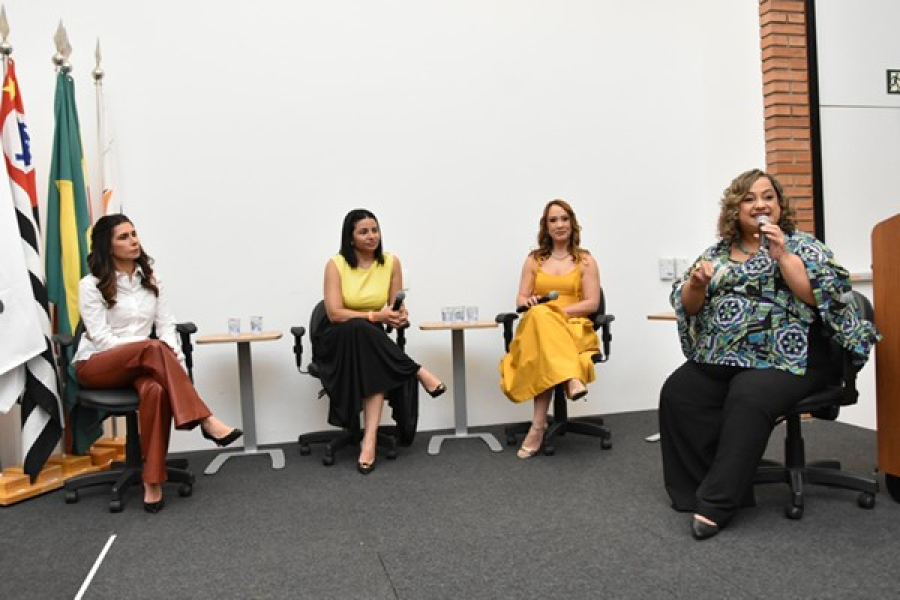 Para compartilhar suas experiências enquanto mulheres empreendedoras, Luciana chamou para o palco a agropecuarista Juliane Perrone (da Cia. Agropecuária Monte Alegre - CMA), as empresárias Náchila Oliveira (sócia-fundadora da EcoPower), Franciele Gomes (da Franciele Gomes Boutique Piccninos) e a advogada Arany Maria Scarpellini Priolli L'apiccirella (proprietária de um edifício empresarial e coworking no Parque dos Lagos).