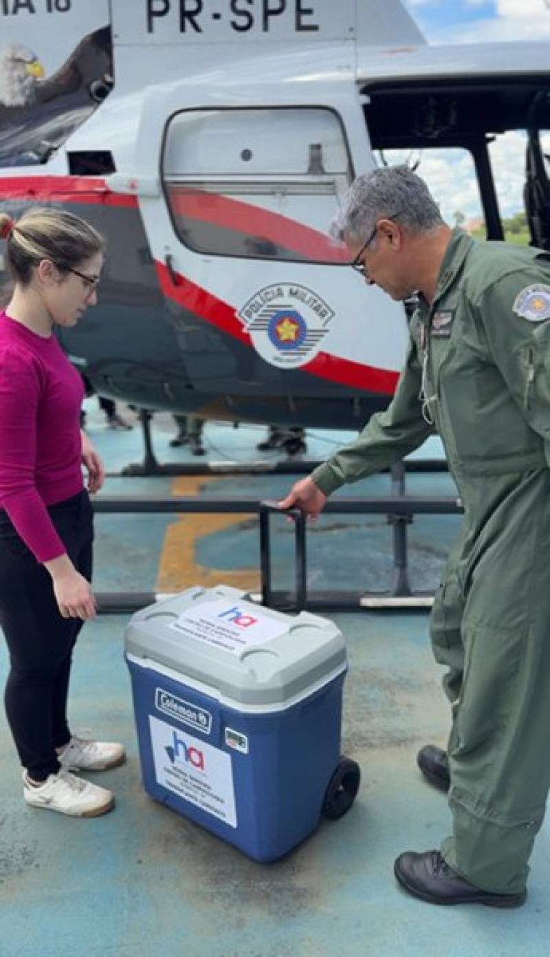 A Santa Casa de Misericórdia de Barretos realizou no último sábado, 17, o 14º transplante cardíaco de seu Centro de Cirurgias Cardíacas. A operação contou com o apoio do helicóptero Águia da Polícia Militar do Estado de São Paulo, que garantiu o transporte ágil do órgão captado no Hospital de Base de São José do Rio Preto. A equipe de transplante, composta pelo dr. Diego Prete (cirurgião cardíaco) e a dra Heloisa Maria Perez Santos (médica residente de cirurgia cardiovascular) deslocou-se por via terrestre até Rio Preto para preparar todo o procedimento e retornou com o coração na aeronave da PM, reduzindo o tempo de deslocamento em uma etapa crítica para o sucesso da cirurgia.