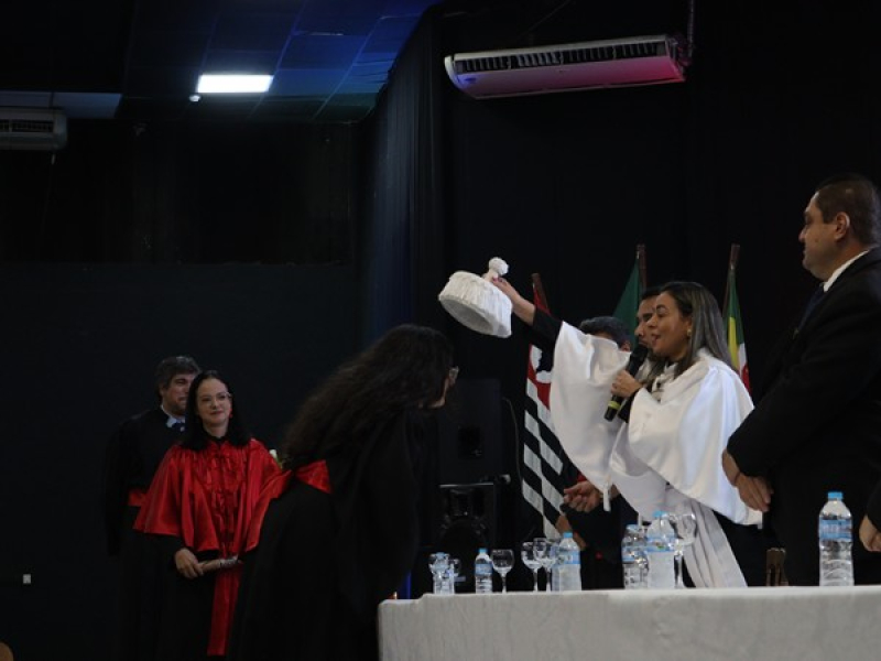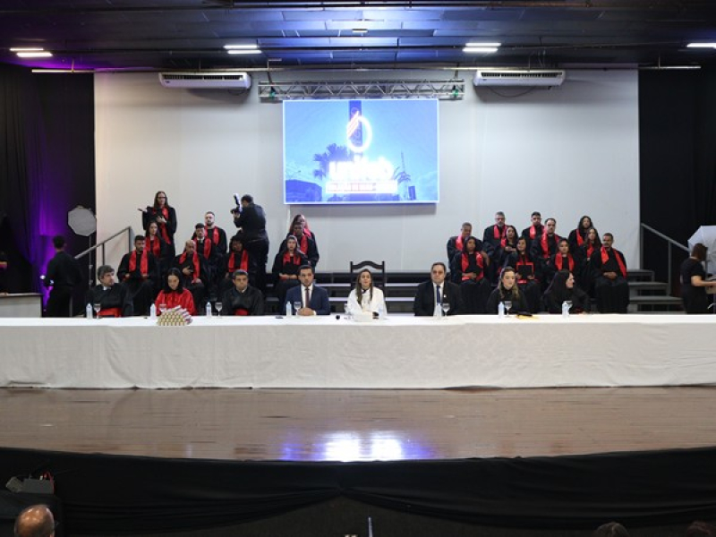 A cerimônia foi presidida pela Reitora Interina do UNIFEB Profa. Ma. Eliane Araújo Cardoso da Silva Santana e a mesa de autoridades ainda contou com as presenças de Stenil Nicolau Martins Gonçalves, secretário do Conselho Curador da FEB (Fundação Educacional de Barretos); Prof. Me. Leandro Alvarenga Silva, nome da turma e coordenador do curso de Direito até 31/12/2025; Profa. Ma. Letícia de Oliveira Catani Ferreira, coordenadora do curso de Direito e patronesse da turma; Prof. Me. Clóvis Ferreira Júnior, docente do curso de Direito e paraninfo da turma; Belisário Rosa Leite Neto, presidente da OAB da 7ª Subseção de Barretos; Profa. Ma. Heloisa Chubaci Bezerra de Menezes, docente do curso de Direito e homenageada da turma; e Profa. Dra. Andreza Gagliardi Spagnol, docente da instituição.