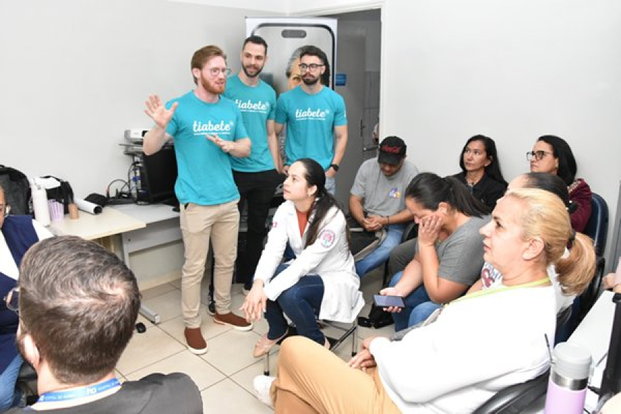 Cerca de 20 funcionários da equipe da Unidade Básica de Saúde (UBS) do bairro Los Angeles, na Estância Turística de Barretos, incluindo médico, profissionais de enfermagem e a agentes comunitários de Saúde (ACSs) participaram nesta quinta-feira, 26, de um treinamento conduzido pela equipe da startup Tia Bete. O médico Leonardo Scandolara Junior e o nutricionista Felipe Muller, fundadores da startup, e o nutricionista Lucas Fenerich, que atualmente também integra a equipe da Tia Bete, estiveram pessoalmente neste primeiro encontro com os profissionais da UBS, reforçando informações sobre o controle da diabetes e demonstrando situações práticas em que a Tia Bete auxilia o paciente em seu dia a dia.