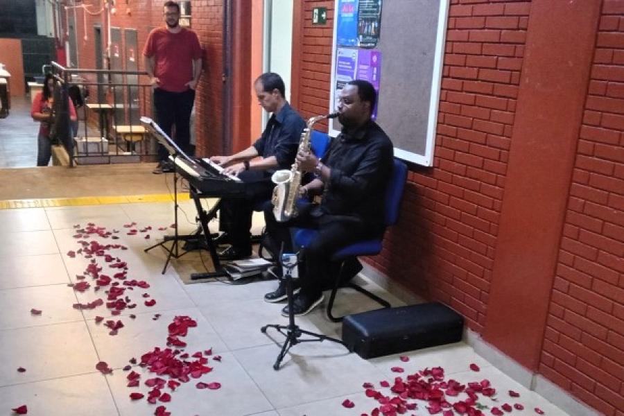 No sábado, os músicos participaram das atividades culturais promovidas pelas escolas municipais Matilde Gitay de Mello, Sagrados Corações e Prof. Dorothóvio do Nascimento, proporcionando aos alunos o contato direto com a música instrumental e a diversidade cultural.