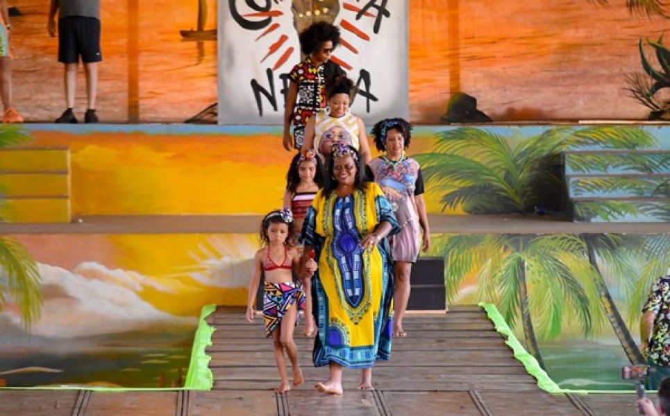 O desfile contou com homens, mulheres e crianças exibindo roupas confeccionadas com tecidos de origem africana ou inspirados nessa herança cultural. Todas as peças foram cedidas pela atleta e empresária Fabrícia Pereira, proprietária da marca Kwanzaa Stilo Afro Brasil. Já os acessórios utilizados pelos modelos foram cedidos pela advogada Luciana Pena, da grife NegaLu.