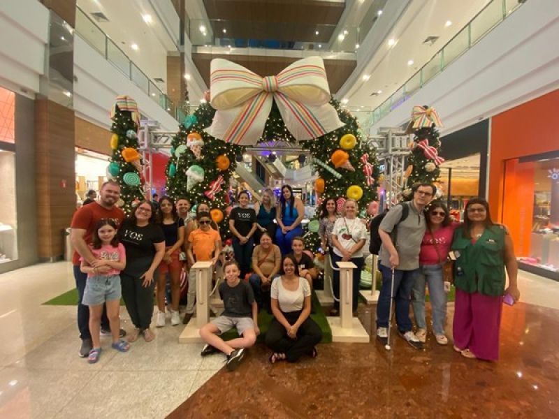 No dia 12 de dezembro, o ShoppingSantaÚrsula recebeu um grupo de pessoas com deficiência visual para participar de uma experiência inclusiva de Natal, promovida em parceria com o Projeto VOS – Ler a Cena. A atividade permitiu aos participantes explorar os detalhes da decoração natalina por meio do tato e da audiodescrição, ampliando a acessibilidade e a inclusão.