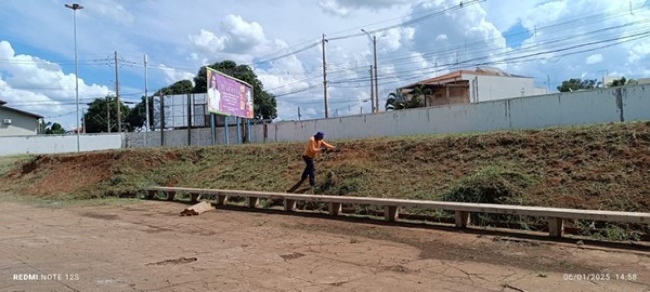 Ainda nesta segunda-feira, 6, foi realizada roçagem e limpeza no Antigo Vocacional, onde está localizada a Farmácia de Alto Custo, entre outros serviços da Secretaria Municipal de Saúde.
