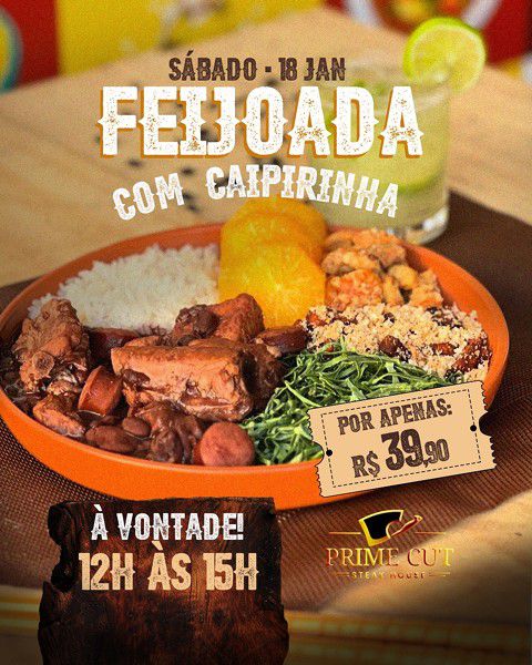 Feijoada com caipirinha todo sábado no Prime Cut Steakhouse