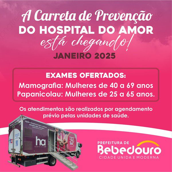 Carreta do Hospital do Amor estará em Bebedouro