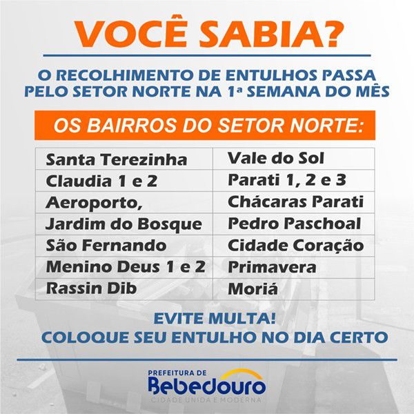 Garagem Municipal recolhe entulhos no setor norte