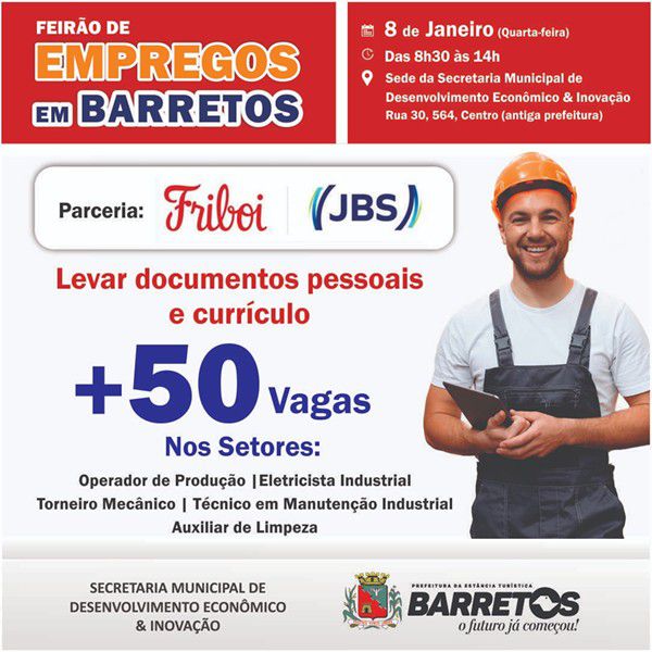 Prefeitura de Barretos promove 1° Feirão de Empregos de 2025 com mais de 50 vagas