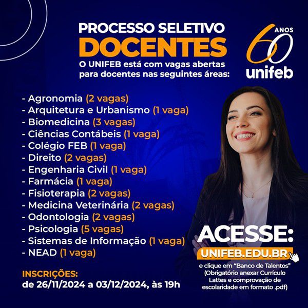 UNIFEB lança inscrições de processo seletivo para contratação de novos docentes