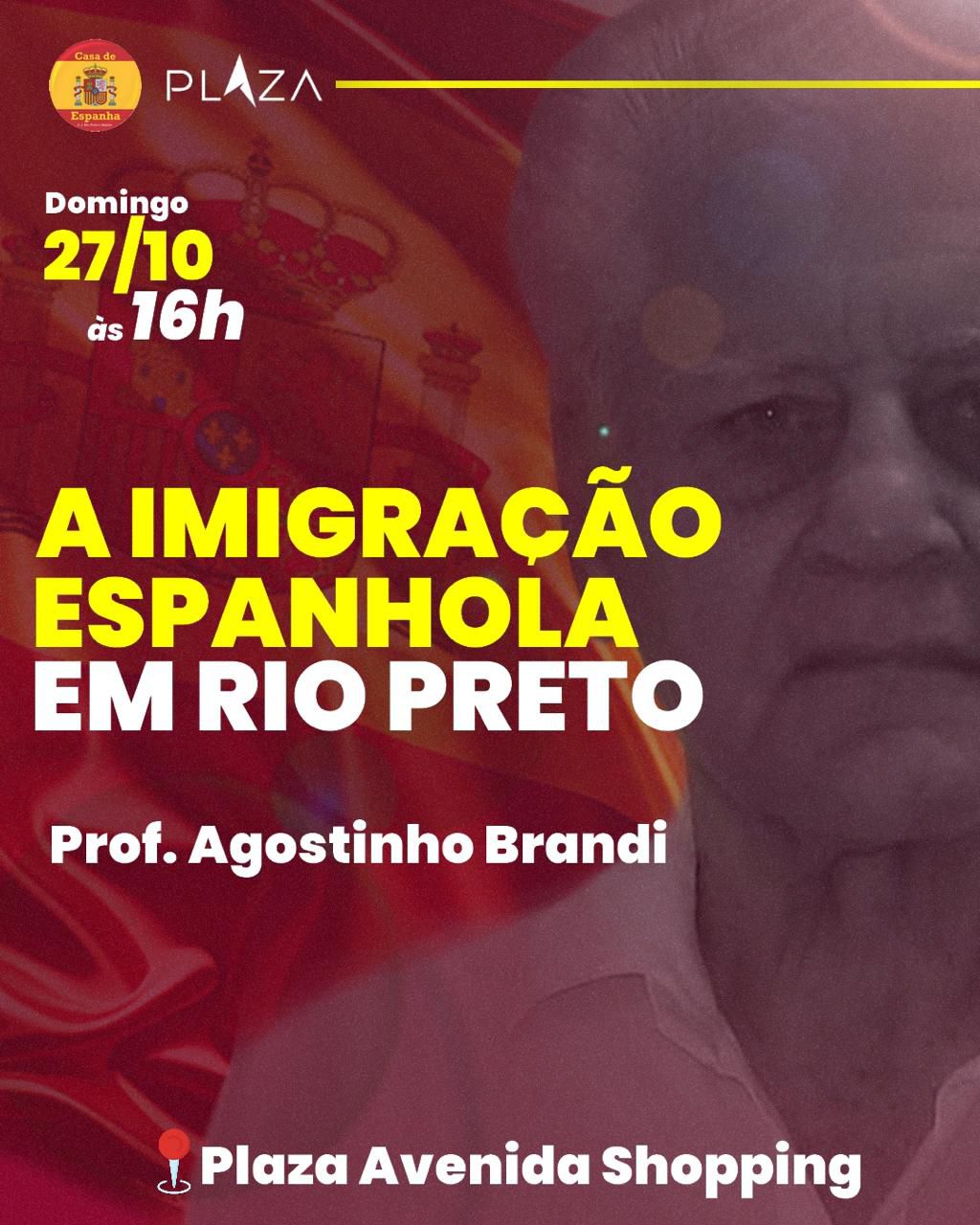 Prof. Agostinho Brandi fala sobre “A Imigração Espanhola em Rio Preto e Região”, dia 27, no Plaza Shopping