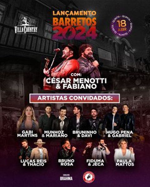 Sertanejos confirmam participação no lançamento da Festa do Peão de Barretos no Villa Country