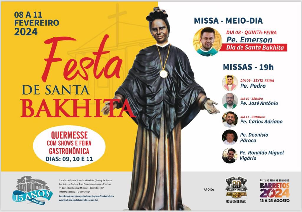 Festa de Santa Bakhita está confirmada para acontecer de 8 a 11 de fevereiro