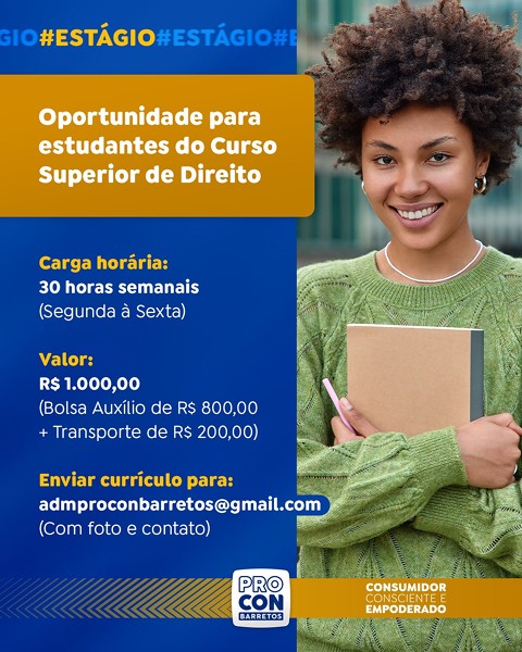 Procon Barretos oferece vaga de estágio para estudantes do ensino superior
