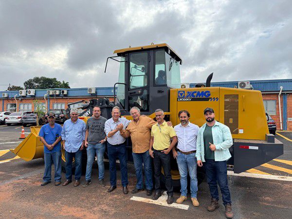 Prefeito, vice e secretários recebem nova pá carregadeira para melhorar infraestrutura